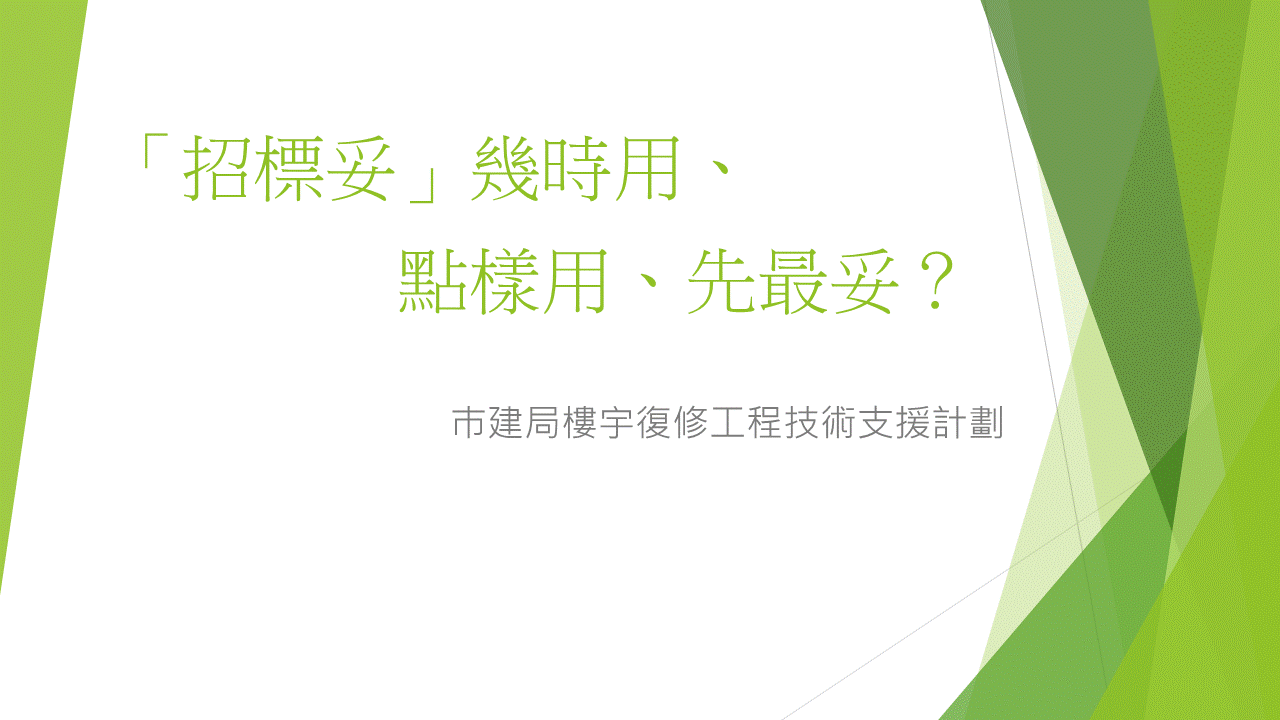 再者,一般緊急工程又唔可以用到,可以想像到用得「招標妥」嘅都係一啲大型綜合工程,係需要時間審視規劃,取得大部份業主共識,落實做邊啲復修工程同埋範圍後,先再申請使用「招標妥」都未遲!
