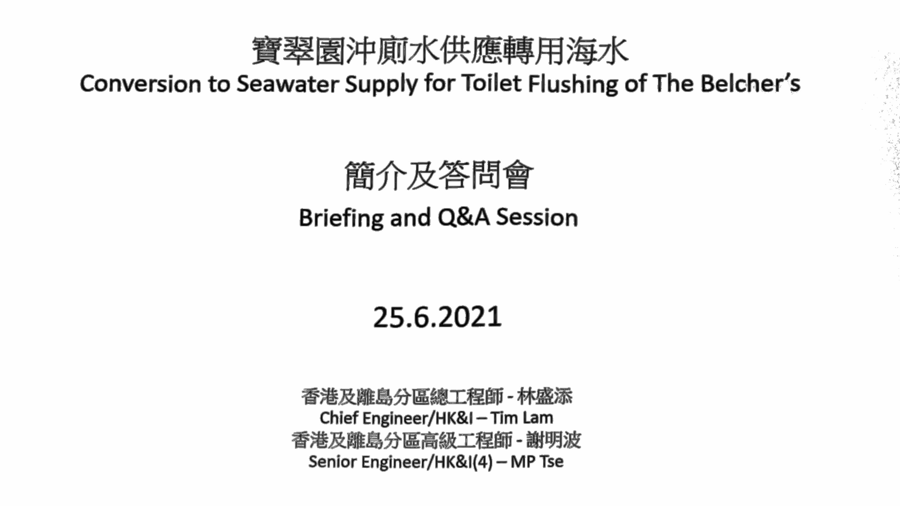 《水務署簡介會》屋苑轉用海水沖厠安排 有 “ 1 則迴響 ”