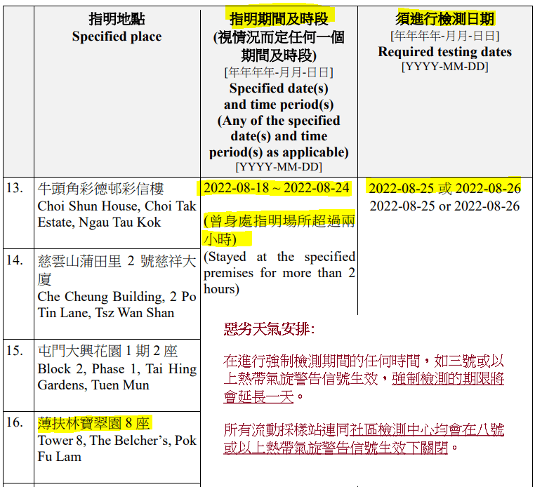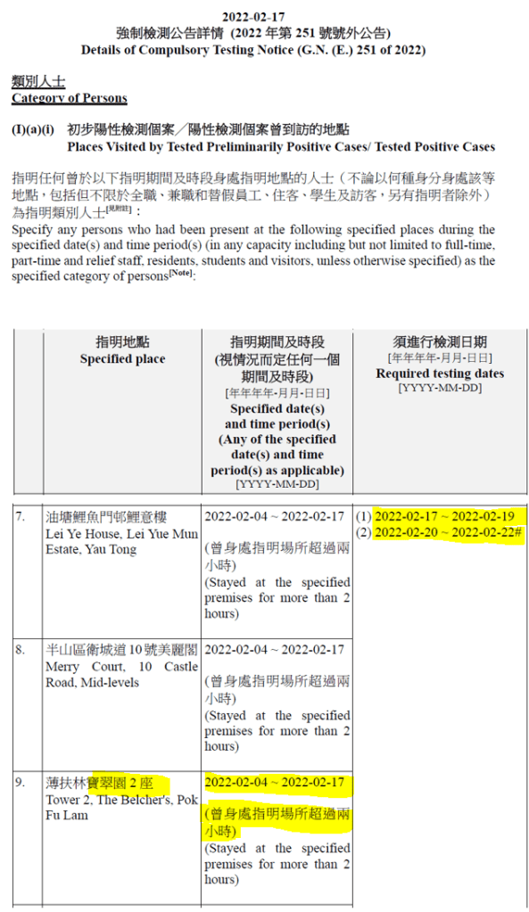 而每日最新大廈確診名單及强制檢測公告則可在以下衛生防護中心網站連結找到: