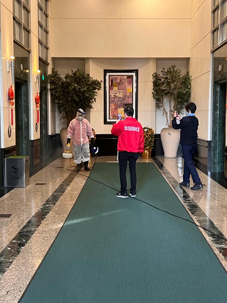 根據消息,三位保安員分別負責外圍保安及後勤工作,過去一段時間沒有在任何一座大堂執勤。管理處接報後已安排清潔承辦商在相關位置進行霧化及深層消毒。