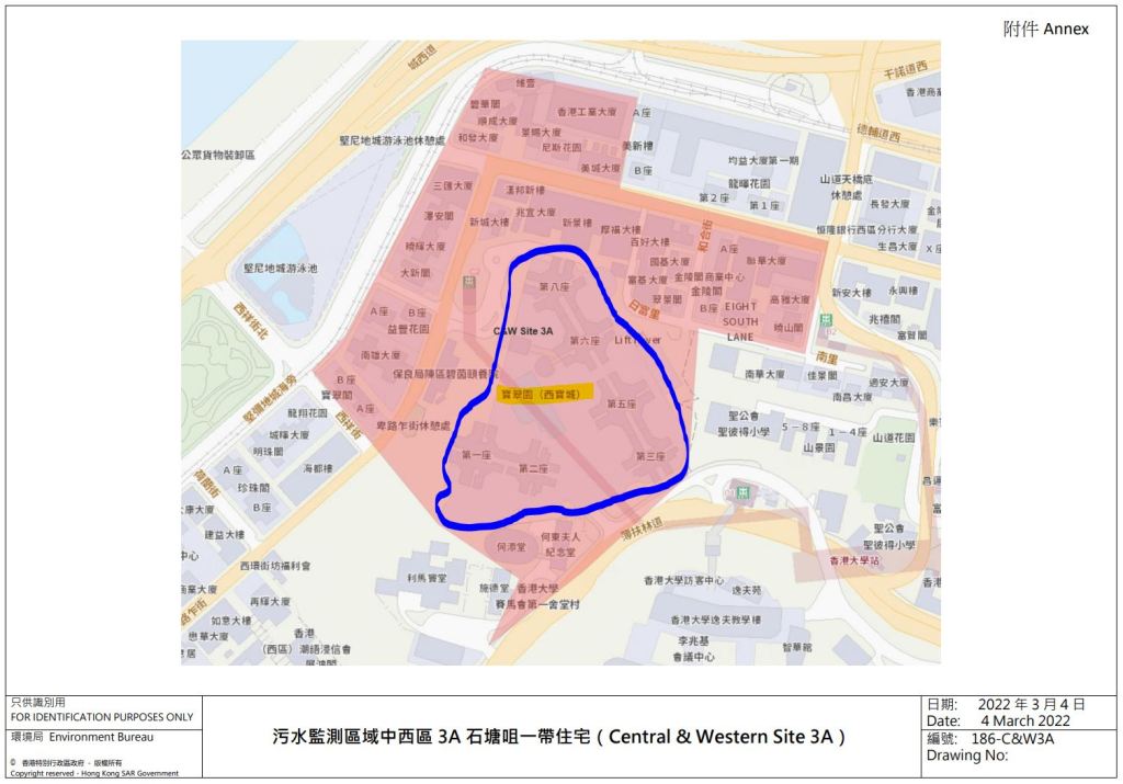 此外政府在堅尼地城士美菲路一帶的污水檢測發現高新冠病毒量,政府向區內15座大廈派發快測包。港大醫學院強烈建議教職員及學生暫不要在區內午膳。