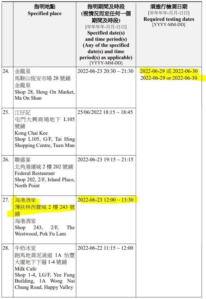此外今晚最新強制檢測公告顯示西寶城2樓海港酒家為陽性檢測個案曾到訪地點,因此曾於 6月23日(上週四)中午12時至下午1時30分期間在上述地址逗留人仕,必須於 6月30日前到附近社區檢測中心完成強制檢測。查詢熱線📞:62756901