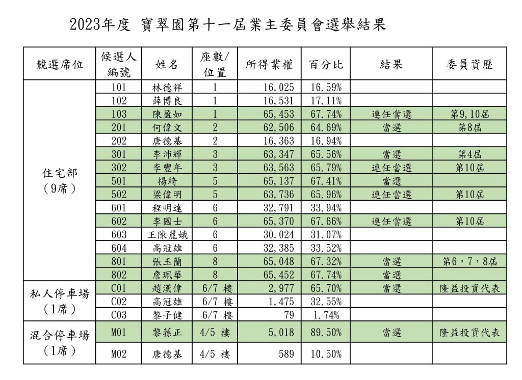 議程8至10:第十一屆業主委員會選舉結果塵埃落定